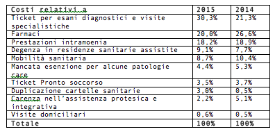 Tema trasversale quello dei costi privati per curarsi, evidentemente troppo pesanti per le tasche dei cittadini: più di uno su dieci (10,8%) segnala l’insostenibilità economica delle cureAccesso di lusso: 2 anni di attesa per la rimozione di protesi, 15 mesi per una mammografia Entrando nel dettaglio, quasi una segnalazione su tre (30,5%, rispetto al 25% del 2014) nel 2015 ha, infatti, riguardato le difficoltà di accesso alle prestazioni sanitarie pubbliche, per liste di attesa (54,5%), ticket (30,5%), intramoenia (8,4%). Crescono decisamente le liste d’attesa per gli interventi chirurgici (35,3% nel 2015 vs il 28,8% del 2014) e per le visite specialistiche (34,3% vs 26,3%).