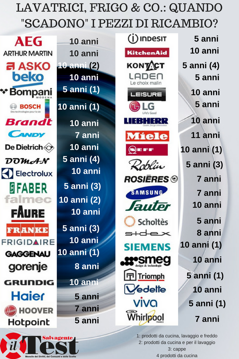 Per andare incontro alle lamentele dei consumatori, alcuni Stati europei, oltre la Svezia, hanno varato maggiori tutele. La Francia ha approvato una legge specifica, e diversi paesi estendono la garanzia minima dei prodotti venduti nei loro territori oltre i 2 anni previsti dall’Ue. Nulla di tutto questo sembra accadere in Italia su impulso delle istituzioni, a parte tre proposte di legge contro l’obsolescenza programmata a rma M5S, Pd e Sel depositate lo scorso luglio e mai discusse in Aula. Sull’argomento, l’Associazione nazionale dei produttori di apparecchi domestici e professionali, interpellata dal Test-Salvagente alza le spalle: “Non è un argomento che ci riguarda, perché rientra nel rapporto tra singole aziende e consumatori. Non parliamo di leggi che non esistono ancora. Quando ci sarà una leg- ge sull’estensione di garanzia, la rispetteremo. Al momento il singolo produttore deve rispet- tare la normativa europea e garantire i pezzi di ricambio per quell’arco di tempo”. Per fortuna, le aziende più lungimiranti non la pensano tutte così, come dimostra la tabella riportata qui.