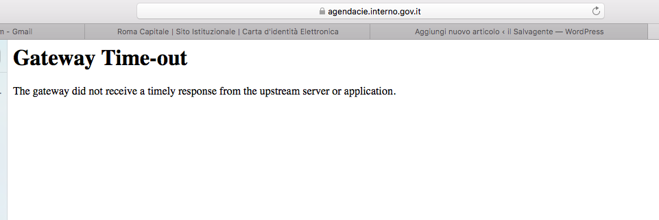 Il nuovo sistema di prenotazione on line delle carte di identità elettroniche che a Roma è entrato a regime il 1 luglio avrebbe dovuto semplificare la procedura accelerandola. Peccato, però, che il sito del ministero dell’Interno non funziona da parecchie ore. Morale della favola? Impossibile prenotare un appuntamento. Se fino a qualche giorno fa, infatti, oltre alla piattaforma TuPassi, l’amministrazione capitolina prevedeva anche la possibilità per gli utenti di recarsi direttamente ad uno degli uffici comunali e assicurarsi un appuntamento, la nuova procedura è solo ed esclusivamente on line. Ma questo è il messaggio che appare a chi prova – da questa mattina – ad accedere al portale agendacie.interno.gov.it
