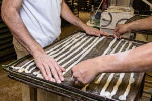 Andrea Cavallari viene considerato “IL RE DEL GRISSINO STIRATO A MANO” grazie al suo modo unico di stesura del grissino e soprattutto ad un impasto con molta idratazione e una breve lievitazione. Il risultato sono dei bastoncini croccanti e fragranti.