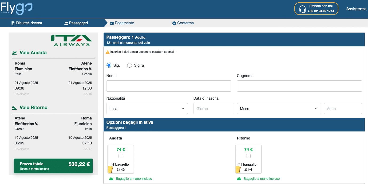 Al momento in cui scriviamo la notizia (alle ore 10:30 del 9 luglio 2025), abbiamo constatato che i siti risultano ancora online ed è possibile effettuare l’acquisto dei biglietti aerei. Ad esempio, abbiamo cercato un volo per due persone da Roma ad Atene, con partenza il 1° agosto e ritorno il 10 agosto.