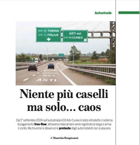 Dal 1° settembre 2024, anche l’autostrada A33 Asti-Cuneo è entrata nel sistema “free-flow”, uno dei più controversi in Italia. Ribattezzata la “Salerno-Reggio Calabria del Nord” per i ritardi decennali nel completamento, oggi è di nuovo al centro delle polemiche per un pedaggio senza caselli ma carico di problemi.