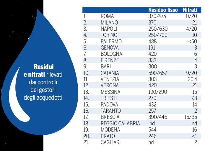 Già osservando la tabella che riportiamo qui sotto, elaborata sulla base dei dati dei principali acquedotti italiani dal Salvagente un anno fa, si vede come la situazione sia estremamente differente tra una città e l’altra della nostra penisola.