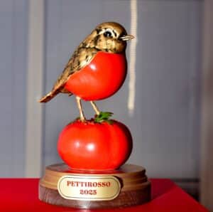 Durante la serata si è svolta la prima edizione del premio PETTIROSSO, conferito ai partner agricoli che si sono distinti per l’alta qualità della materia prima conferita ma anche per aver mantenuto la totalità degli importanti impegni quantitativi presi prima della campagna di produzione. “Il premio è una scultura unica realizzata e dipinta a mano per PETTI.” spiega Pasquale Petti e continua: “Il pettirosso rappresenta i valori del coraggio, della resilienza e del buon auspicio con cui vogliamo simbolicamente suggellare una proficua collaborazione che ci auguriamo continui anche in futuro. Vogliamo supportare e incentivare gli agricoltori che scelgono di impegnarsi con la nostra azienda e riconoscere loro il giusto ed equo valore della materia prima. Le prospettive di crescita del progetto Petti sono importanti, anche grazie al progetto di realizzare un secondo stabilimento in Toscana, riteniamo pertanto necessario rafforzare la nostra rete agricola con serietà e progettualità oltre le logiche di mera negoziazione del prezzo.”