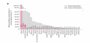 Secondo un rapporto di Wwf, Trase, della Chalmers University of Technology di Göteborg della Stockholm Environment Institute, l’Italia è tra i principali responsabili della deforestazione in Amazzonia. Per soddisfare i consumi italiani, ogni anno rasi al suolo 4mila ettari di foresta (come 5mila campi di calcio) pari al 10% della deforestazione totale annua. Il rapporto è, secondo gli autori, la prima analisi transfrontaliera che esamina l’andamento complessivo della deforestazione amazzonica e il suo legame diretto con le diverse filiere agricole. Tra il 2018 e il 2022, il 36% della deforestazione globale è avvenuta in Amazzonia, dove sono stati distrutti 8,6 milioni di ettari di foresta (un’area più grande dell’Austria).