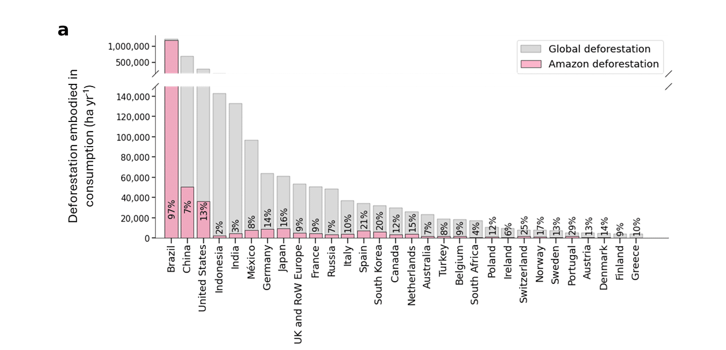 Per arrivare a questi risultati, il rapporto integra dati satellitari, statistiche agricole subnazionali e modelli che seguono le materie prime lungo le catene globali del valore, fino ai paesi consumatori. La regione amazzonica pesa per oltre il 20% della deforestazione complessiva associata ai consumi di paesi come Portogallo, Svizzera, Spagna e Corea del Sud, e per il 59% della deforestazione legata alla filiera mondiale della carne bovina.