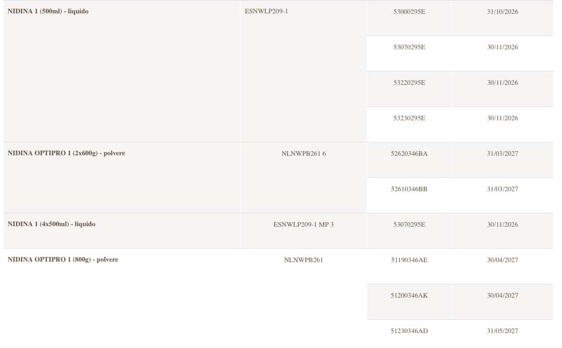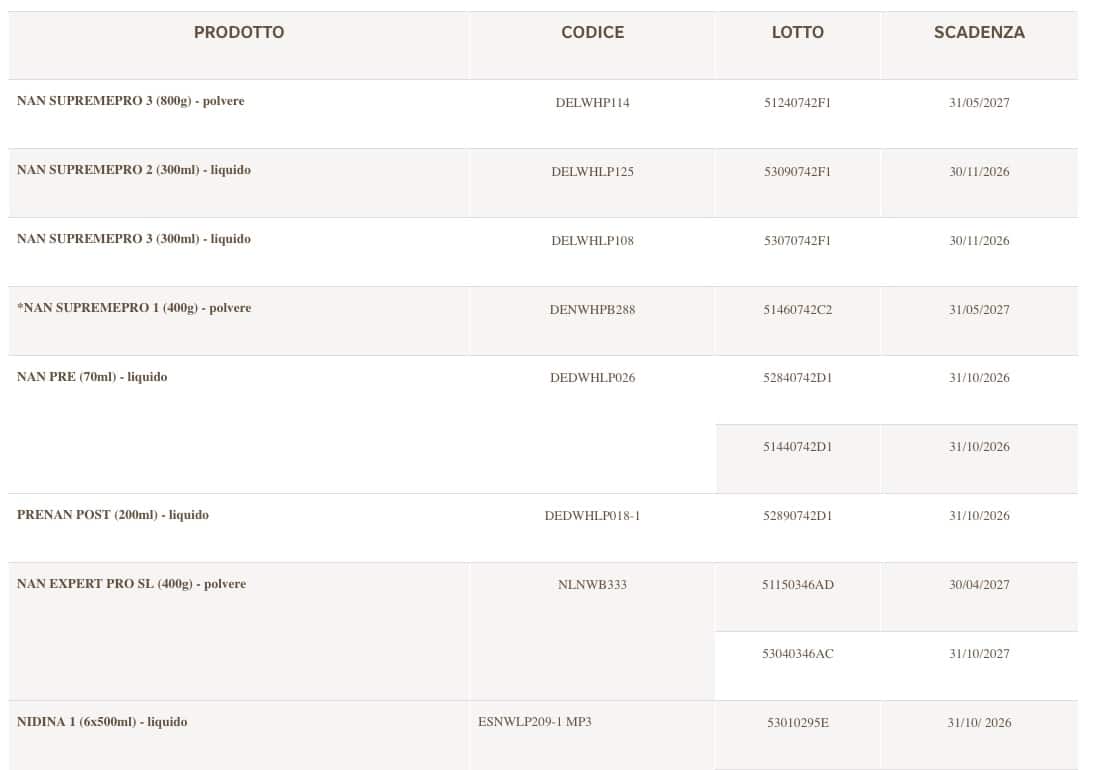 Nestlé Italiana informa che «in collaborazione con le autorità competenti, sta richiamando volontariamente alcuni lotti di prodotti formulati per l’infanzia». I lotti commercializzati in Italia e interessati dal richiamo sono elencati sul sito ufficiale dell’azienda.