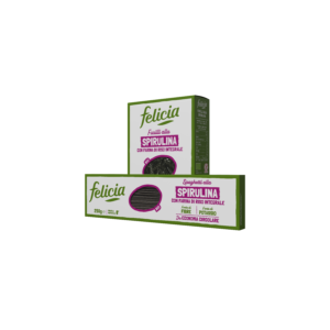 Tra le più recenti innovazioni di prodotto lanciate sul mercato, la pasta Felicia alla Spirulina, disponibile in due formati spaghetti e fusilli, è a base di farina di riso integrale e Spirulina K Biologica prodotta naturalmente da ApuliaKundi. Questo prodotto è una fonte di fibre, ferro e, potassio.