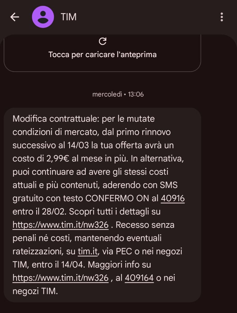 In tal caso, TIM ha pubblicizzato queste modifiche che avrebbe applicato ma è evidente che poi, ricevere il messaggio in questione, porta sempre a tentennare sul da farsi.