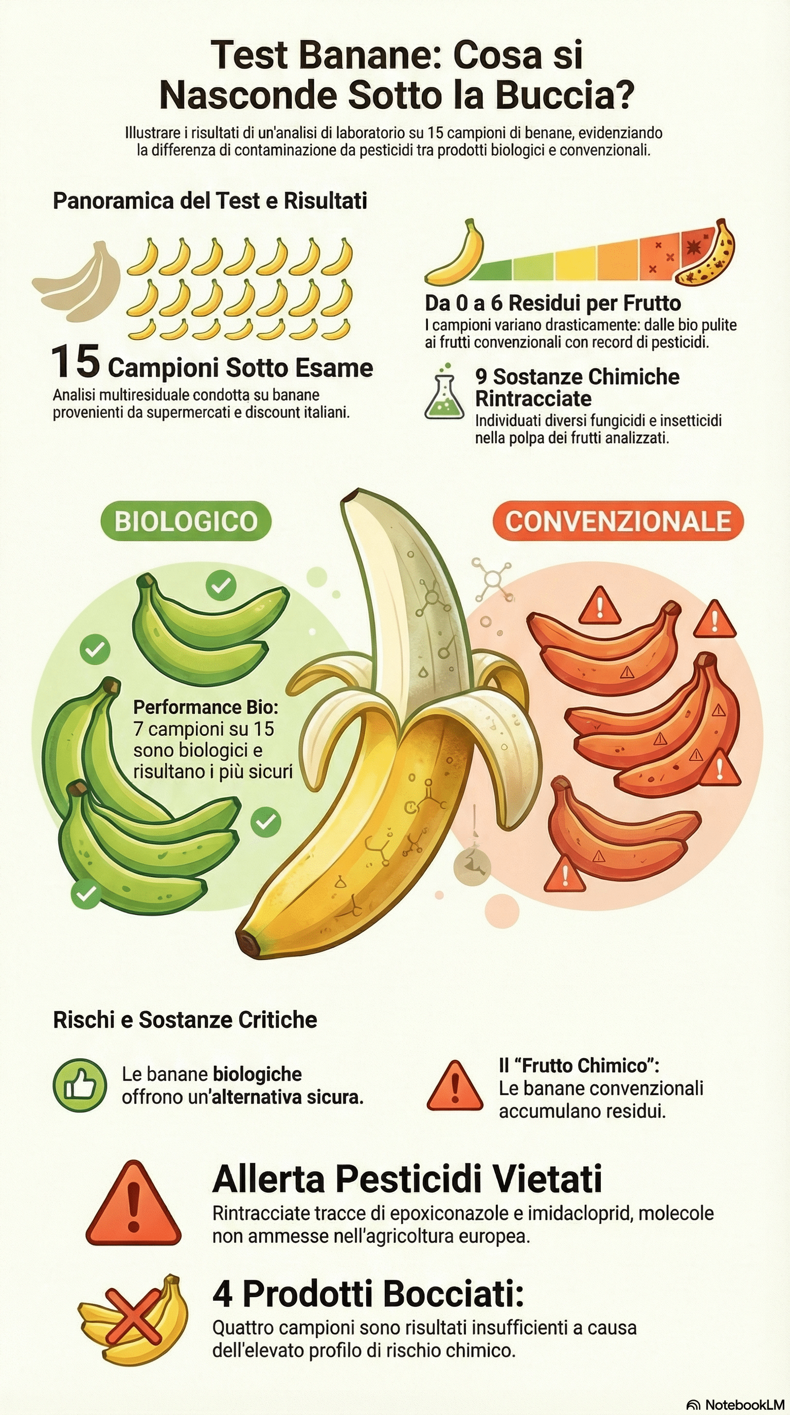 I risultati del nostro test tuttavia mostrano anche campioni “puliti”, a cominciare da quelli biologici, senza dimenticare che la banana è soprannominata “frutto chimico” proprio per la quantità di trattamenti che subisce, dall’albero alla raccolta fino alla sua maturazione, come abbiamo spiegato in questo articolo.